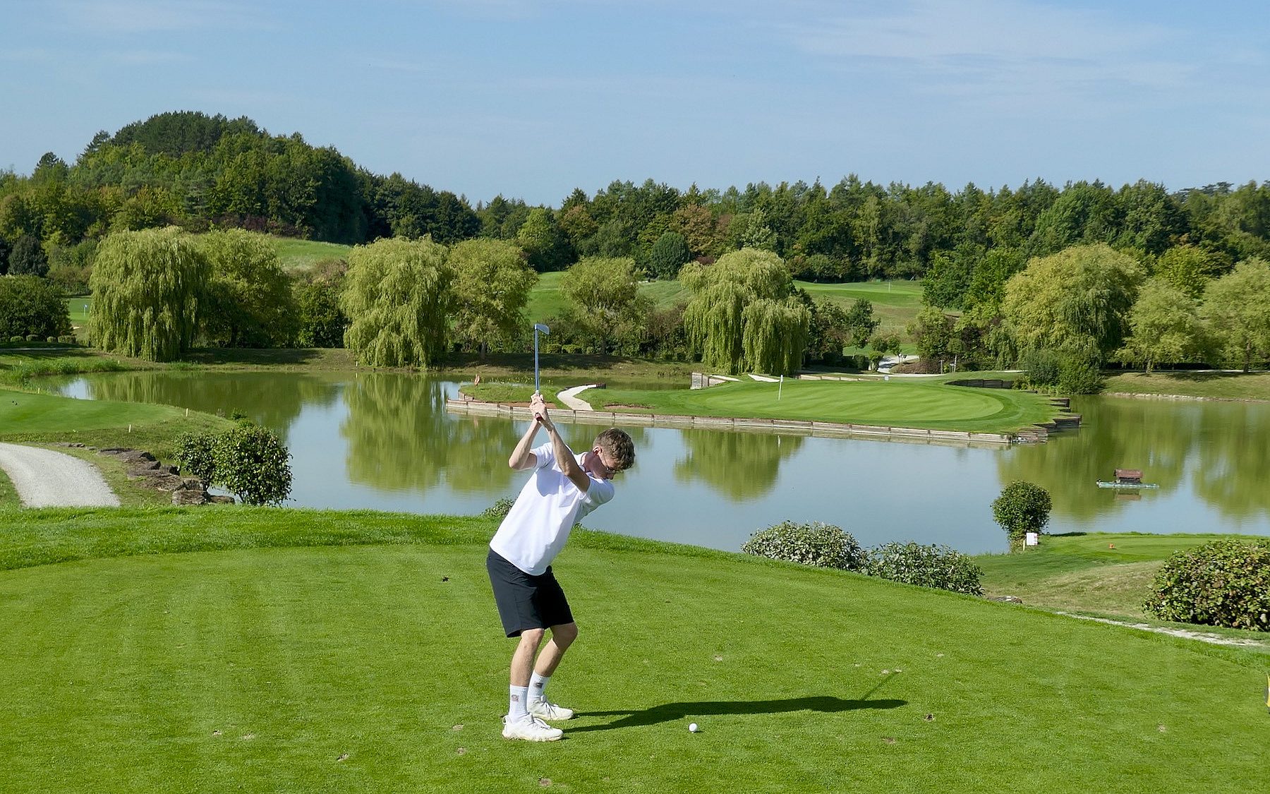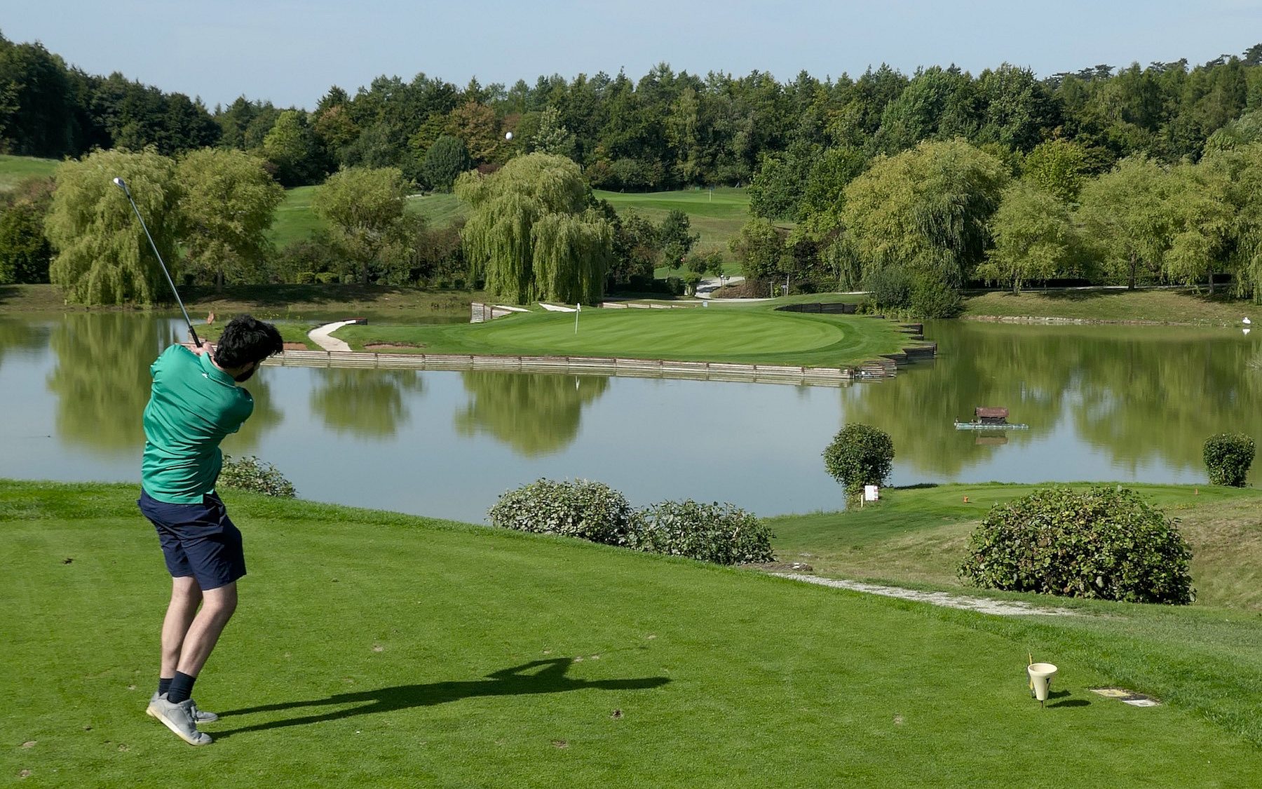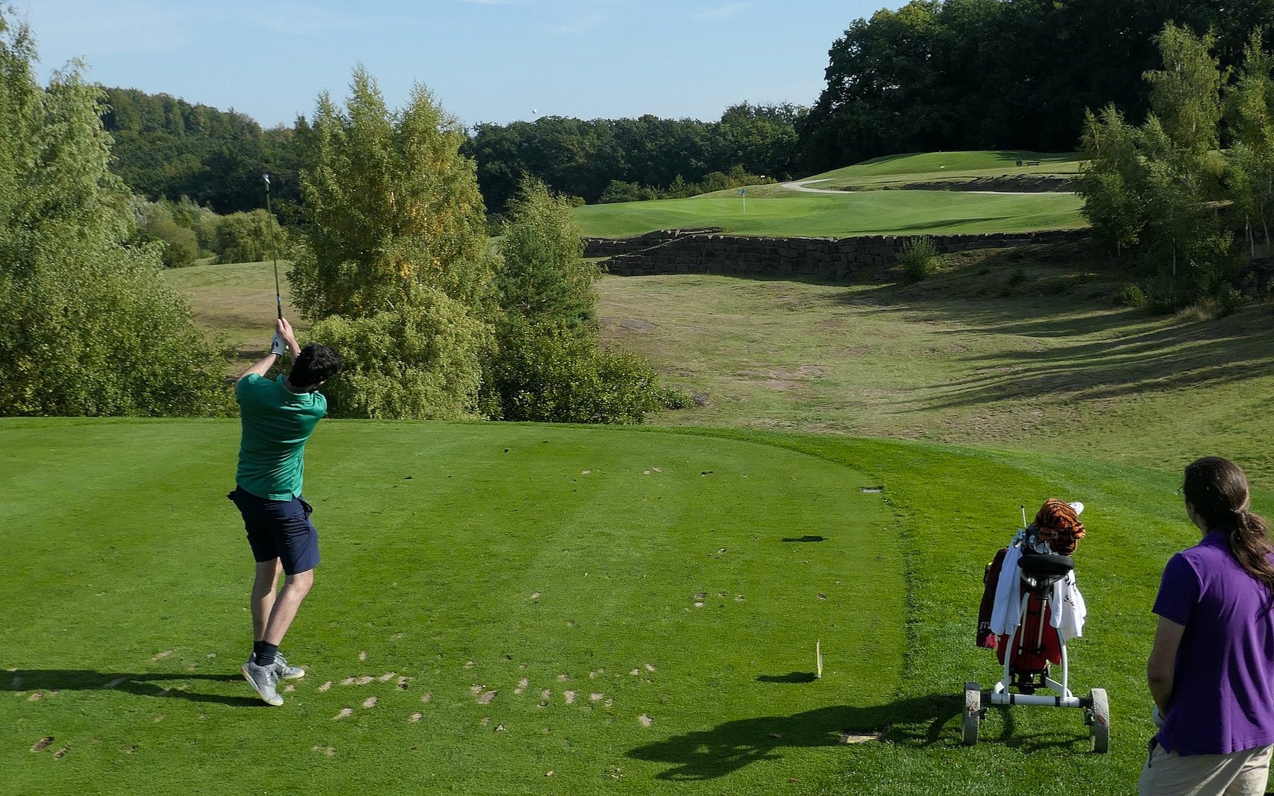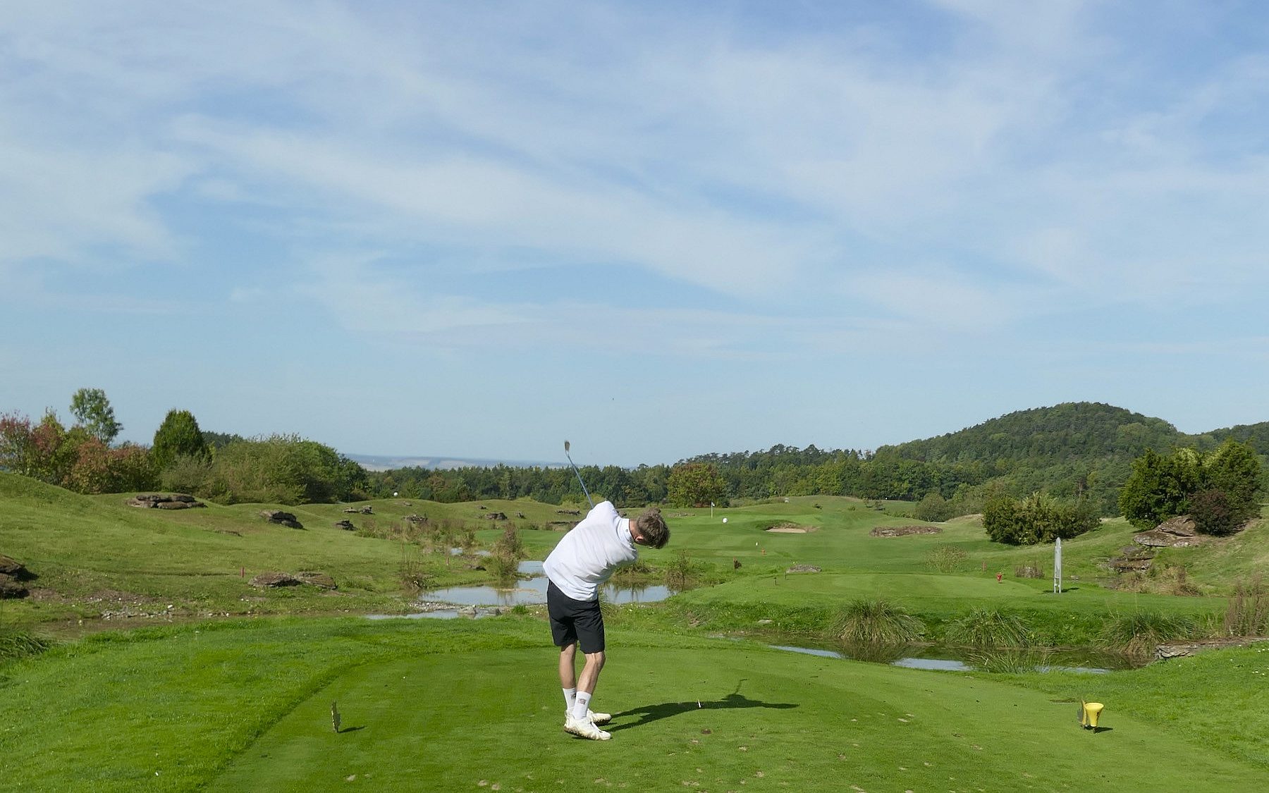 Yannick, Bergische Universität Wuppertal, auf der 8 des Niedersachsen Course des GC Hardenberg, einem 208 Meter langen BIEST von einem Par 3.